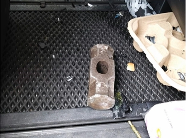 ▼榔頭距離女童座位只差5公分,導致女童的右小腿被碎玻璃劃傷。(圖/東森新聞)