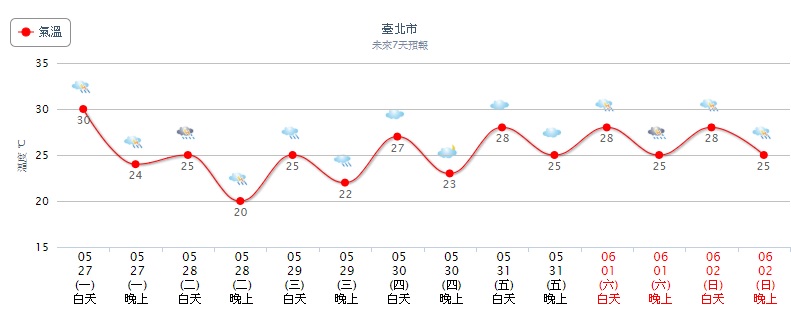 ▼未來一周北市溫度趨勢圖!圖/中央氣象局