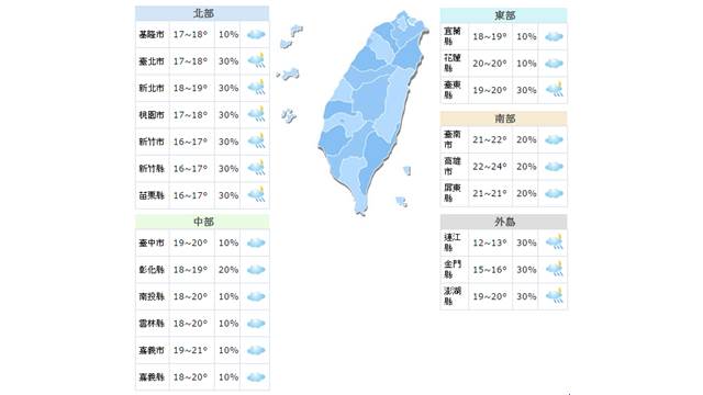 受鋒面通過影響,全台各地今將轉為短暫陣雨的天氣型態。中南部清晨已有陣雨發生,預估中午過後趨緩;北部雨勢可能會持續至下半天,但降雨多斷斷續續。