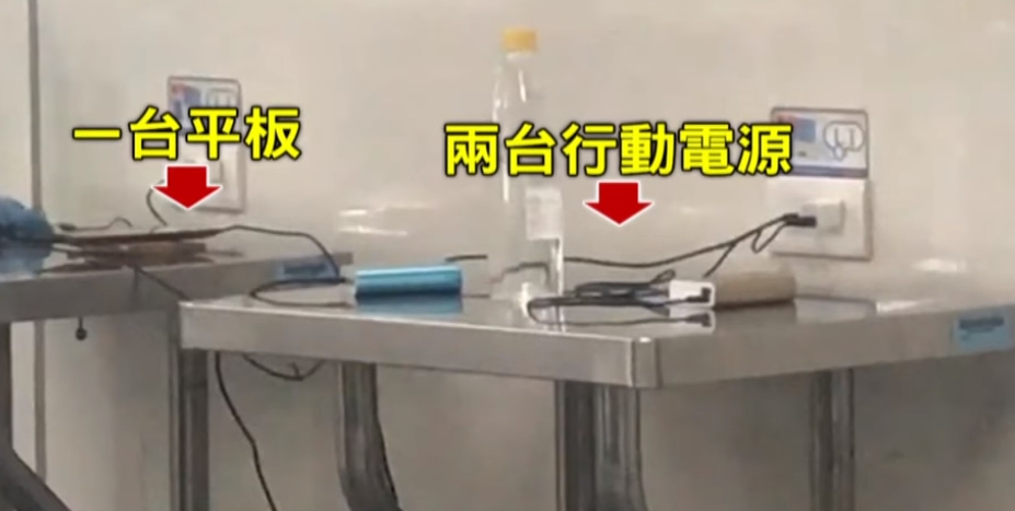桌上ㄧ共有2台行動電源、ㄧ台平板,另一台平板還排隊中。