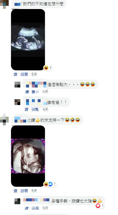 也有網友PO出自家寶寶的超音波照分享表示,「這週去看,寶寶在裡面開心的溜滑梯」、「我一個女兒超音波直接舉腳給你拍、一個嘟嘴」、「我兒子是把雙腳打開露雞雞給我看」、「我兒子都擋住臉不給看」,讓留言區蔓延了幸福的溫馨氣氛。