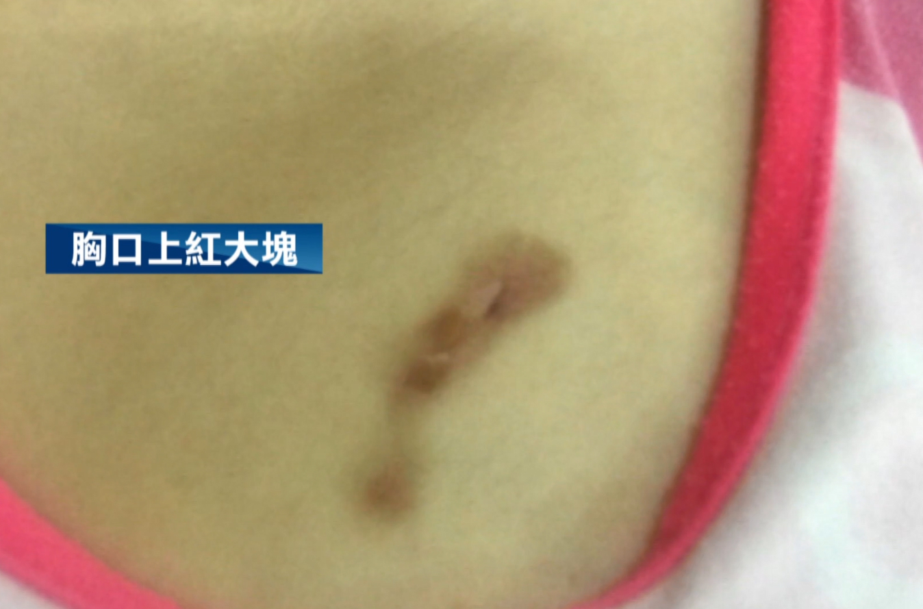 另一張胸口上方也紅了一大塊,李小姐指控這全是快煮壺造成。