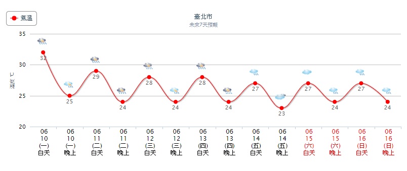 ▼未來一周北市溫度趨勢圖。圖/中央氣象局