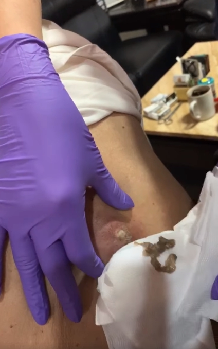 原PO透露,其實阿公在這20年來,已多次長出類似的粉瘤,也看過醫生,但過幾年後又會莫名跑出來,「這次隔了大概5年,不僅同個位置,還是自己爆出來的,而且很臭」,她當時整整擠了半小時,而阿公雖然有些疼痛,卻只有忍不住哀嚎幾聲,是正港男子漢。她也坦言,雖然這種情況可以靠開刀處理,但家人擔心阿公年紀大、較不注重清潔,傷口不好癒合,目前靠著勤換藥來照顧傷口,同時她也強調,「現在有消毒、上藥、擦藥,還有口服消炎藥,這禮拜會持續觀察」,阿公目前狀況良好。