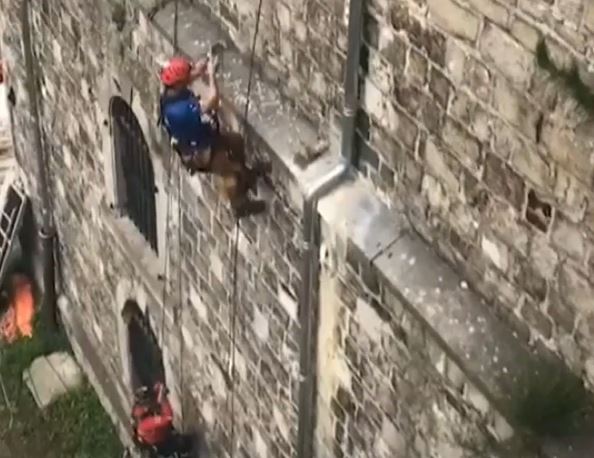 高雄繩索隊領隊孔垂翔:「每個人必須要具備,能夠攀爬75公尺的能力,爬上去之後還要有能力,還要有體力,去將患者也拉到75公尺高的地方,這是我們第一次遇到,又要攀爬又要拖拉。」
