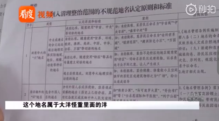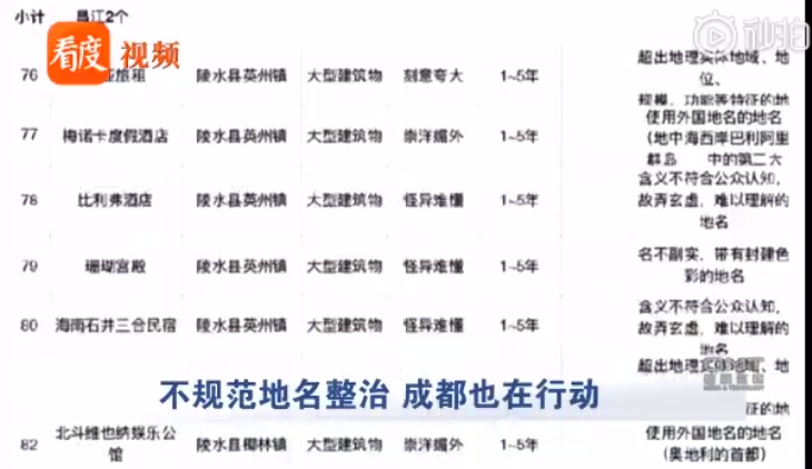 此次易名行動源自2018年底,中國民政部、公安部、自然資源部、住房城鄉建設部、交通運輸部等部委,發布「關於進一步清理整治不規範地名的通知」指出,部分地區仍然存在「大、洋、怪、重」等不規範地名,要求落實清理整治。