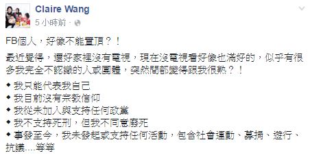 臉書發文,表示自己已關閉部落格,也道出她個人的心聲,「許多人質疑我的冷靜,有人覺得我