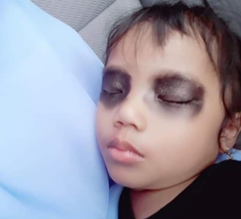 該名來自緬甸的爸爸在臉書多個社團分享「治孩神招」,他在貼文指出,「我勸女兒,太(常)玩手機會傷到眼睛,她不信。於是我趁她睡覺時,給她畫上黑眼圈,嚇唬嚇唬她!現在好多了!」照片中可見,身穿黑衣的女童,閉著眼睛睡得香甜,但眼睛周圍卻被塗黑了一大圈,模樣宛如熊貓,她睡醒後,似乎意識到臉上不對勁,照了鏡子後當場淚崩,媽媽抱著她安撫,但女童仍止不住悲傷,還一邊癟嘴,一臉生無可戀的看著遠方,讓人看了想安慰,卻又覺得好笑。