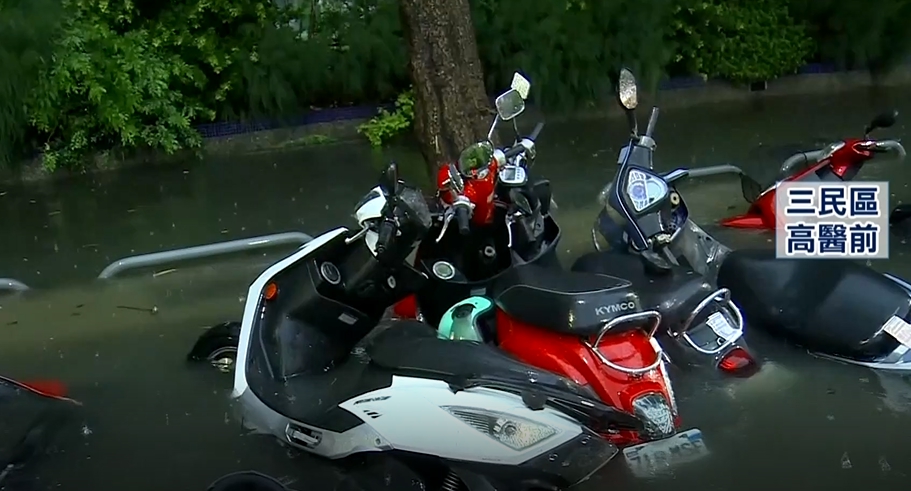 高雄昨天(19號)下暴雨,下午三點到四點,時雨量最大在楠梓,雨量達到102.5毫米,右昌路有冰箱都漂在馬路上,雨量第二大的地區在林園,接近100毫米,民眾坐在公車上,水淹腳踝,雨量第三大在三民區,這裡有運將受困計程車裡,水淹超過引擎蓋,高醫前有整排機車泡水。