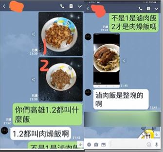 從對話截圖可以看得出,網友問他的高雄朋友,圖一圖二,叫做什麼飯,朋友回都叫做肉燥飯,還回傳一張照片表示,滷肉飯的肉是整塊的,讓這名網友感到懷疑,整塊肉的不是叫做爌肉飯嗎?