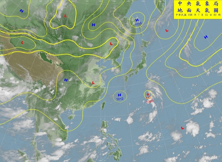 今天各地高溫普遍在33度以上,其中在大臺北地區、中南部近山區及花東縱谷區氣溫可達35、36度左右,中午前後紫外線指數也偏高,出門在外也做好防曬並且多補充水份,以防中暑。另外,目前在日本南方海面的熱帶性低氣壓,有增強為輕度颱風的趨勢,目前位於臺灣東方約1660公里的海面上,未來往北朝日本關東一帶移動,預計對台灣天氣不會造成影響。