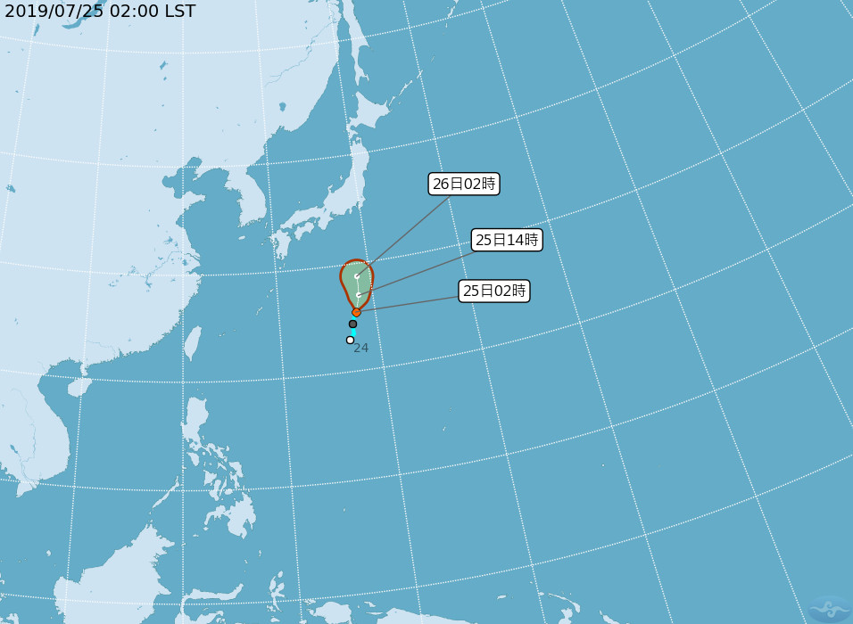 ▼目前在日本南方海面的熱帶性低氣壓,有增強為輕度颱風的趨勢。(圖/中央氣象局)
