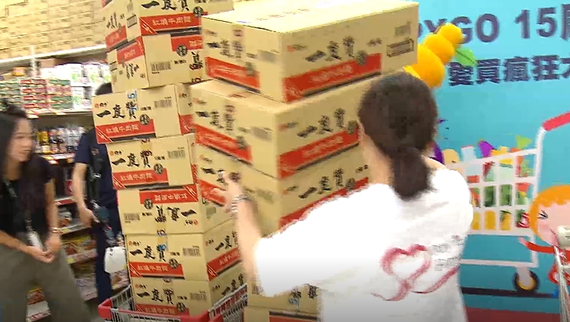 ▼民眾快速把一箱箱商品放進購物車,要在2分鐘內湊到剛好1萬元。(圖/東森新聞)