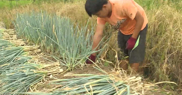 宜蘭的經濟作物,三星蔥民趕著搶收,包裝上市,受到颱風的影響,三星蔥價格上漲,今(7)日價格大約每斤140元,農民說明天到貨量更少,價格還有可能更加上揚。