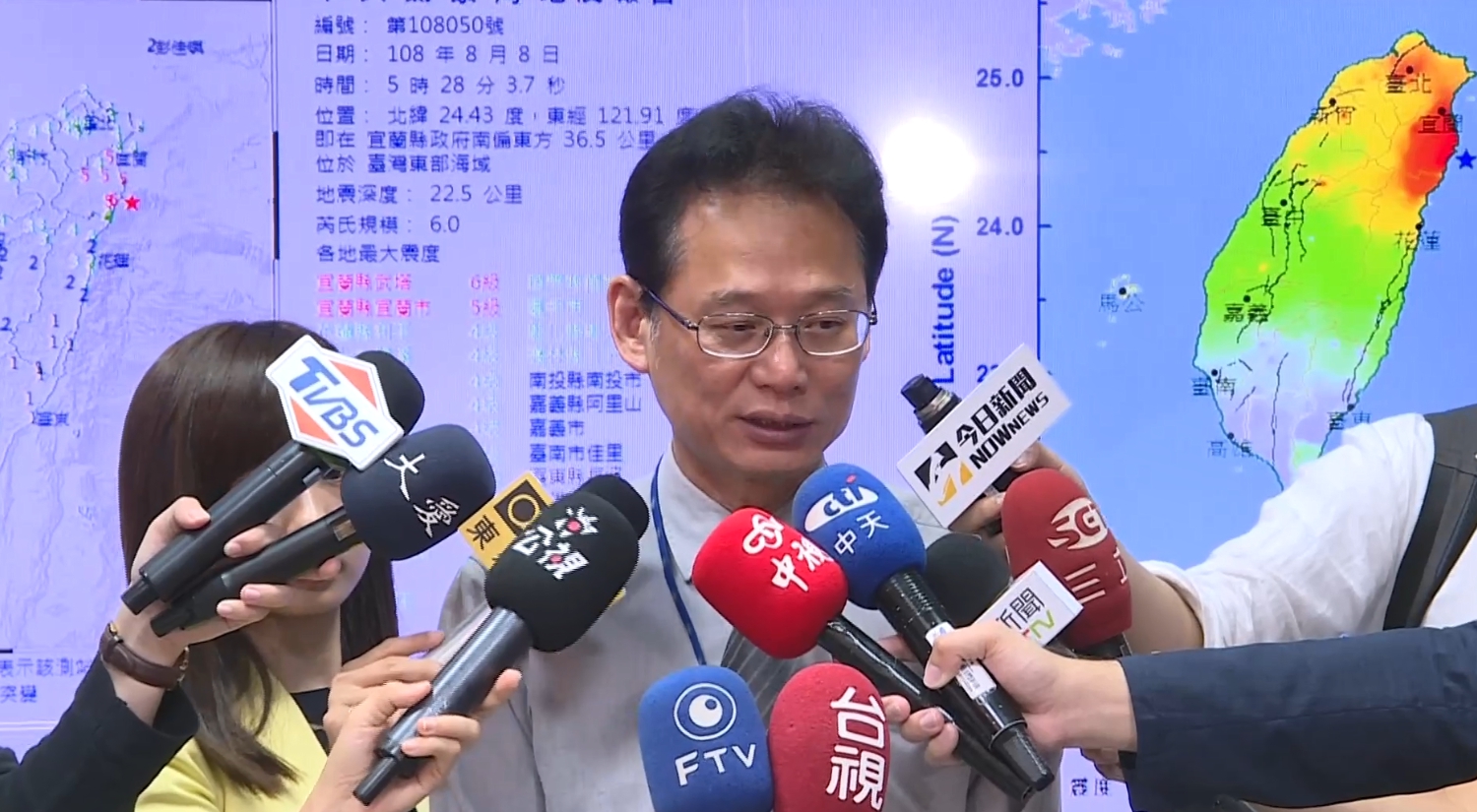 而稍早氣象局地震測報中心主任陳國昌指出,全台每年平均都會有2-3次規模6.0以上的地震,1920年曾發生過規模8.0的地震,1963年也有過規模7.4的地震,後來1994年規模6.5地震,南澳當時有出現災情。陳國昌表示,南宜蘭構造有破碎帶,地震本來就頻繁,過去2年較安靜,今年比較多明顯地震,目前以主震來定義,也不排除是前震,未來一周可能還有規模6.0以上的地震。