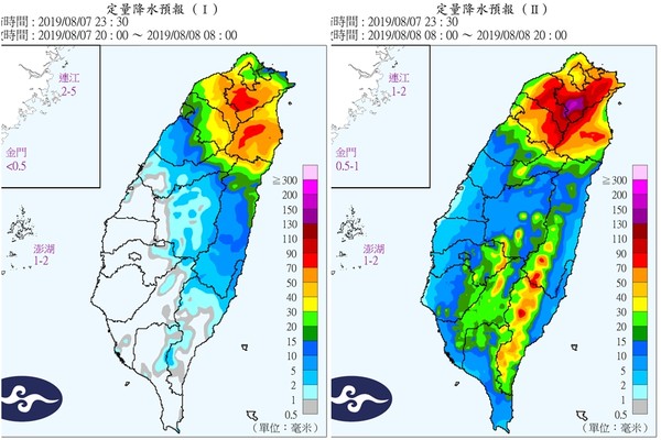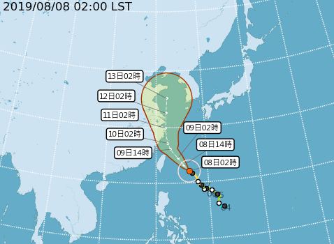 美軍聯合颱風警報中心(JTWC)最新預報也顯示,利奇馬有機會增強到強烈颱風等級,氣象局簡正謝明昌7日深夜11時40分在海上警報會上說明,利奇馬最接近台灣的時段落在今(8)日下半天到9日一整天,8日清晨北部、東北部就會出現雨,午後更可能達豪雨等級,其他地區也會出現午後熱對流。