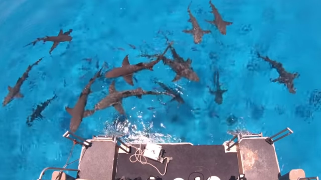 馬克和他的團隊日前前往巴哈馬(Bahamas)一處,有聚集大量鯊魚的海洋,由於鯊魚對大家來說,有著兇殘可怕的形象,牠們也的確可以嗅出數公里外的血腥味,以幫助獵食,因此馬克打算做兩階段實驗,測試看看鯊魚是否真的像大家所認知的那麼嗜血。