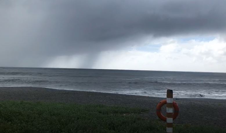 今年的第九號颱風利奇馬外圍環流逐漸接近中,氣流相當不穩定,宜蘭跟花蓮也出現了一些特殊的天氣現象,像是花蓮7號晚間出現了火彩虹的景象,持續了整整20分鐘,宜蘭南方澳的內埤海灘今天(8號)也出現了雨瀑,讓附近的民眾都感到相當驚奇。