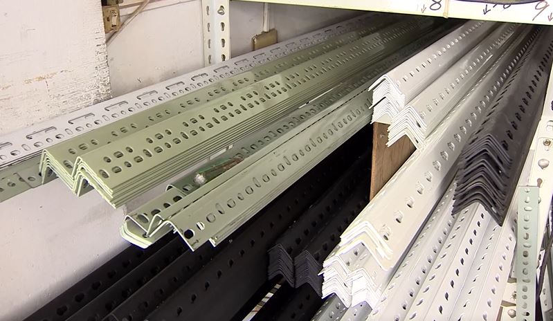 業者指出,婦人的衣架是傳統角鋼,但現在已經很少人在用了,因為傳統的是L型孔洞多,需要大量的螺絲組裝,一根重量不到1公斤,但新式的M型角鋼,免螺絲 用卡榫,方便穩固,組裝快2倍,比傳統的只貴了2成。
