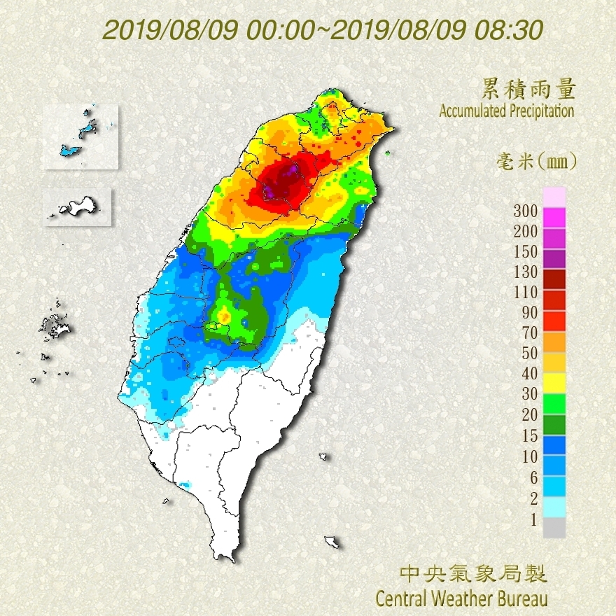 氣象局簡正謝明昌表示,利奇馬颱風目前所處海域海溫仍偏高,之後將走向低海溫地區,強度可能隨之減弱,但今天依然是颱風影響最劇烈的一天,預估北台灣上半天仍會有一波波雨勢進來,有機會出現豪雨跟豪大雨,仍須嚴加戒備。隨著颱風逐漸北移,下午過後北台灣雨量將逐漸減緩,但颱風北上過程中,同時引入西南風,未來雨區將轉移至中南部、高屏山區,待明日颱風遠離後,有機會解除颱風警報,但需注意中南部雨勢。