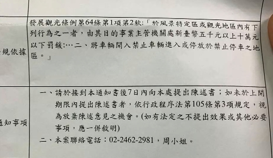 北觀處基隆管理站主任李思賢:「呼籲民眾不要因為一時的方便就造成他人的不便,民眾可以收到通知單之後,在七日內提出申訴。」