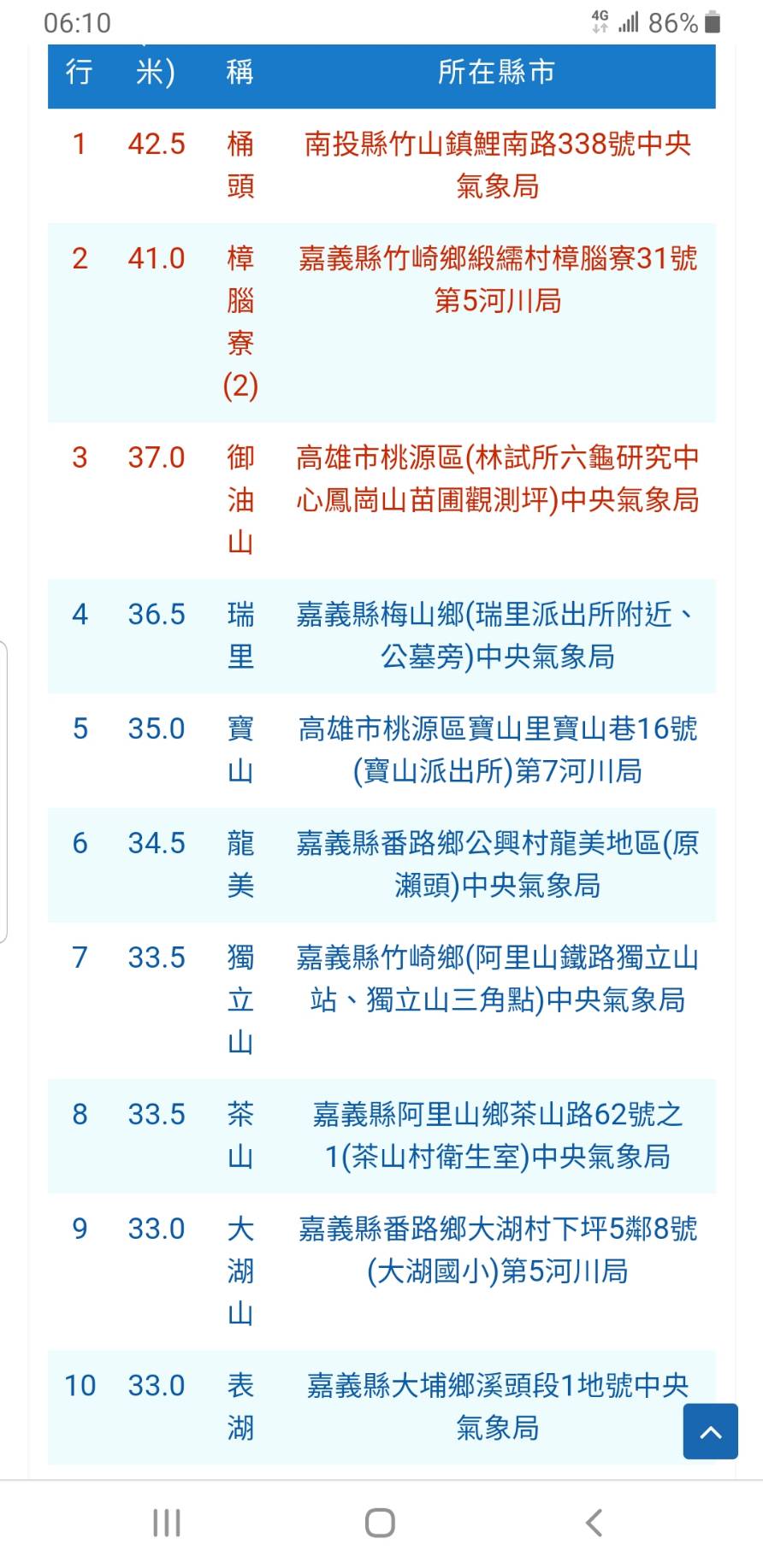 ▼最新一小時,時雨量排行。(圖/中央氣象局)