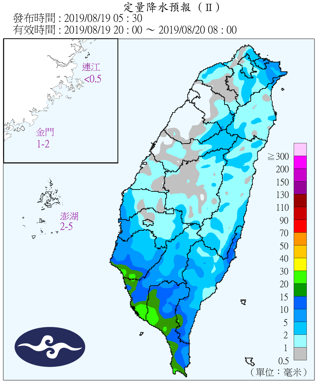 昨天(18日)西南風影響,臺中以南一整天有不定時降雨,並有局部大雨至豪雨出現,其他地方上午為多雲到晴,但午後熱對流發展旺盛,造成局部大雷雨,局部地區降雨持續至晚上;除了南部因降雨顯著高溫僅26、27度以外,其他地區高溫普遍在31度以上,而今天(19日)全台12縣市也發布大雨特報,且局部地區可能發生大雷雨。