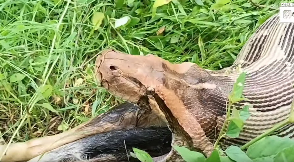 ▼蟒蛇若感覺到危險,便會迅速吐出未消化的食物。(圖/翻攝自YouTube/Caters Clips)
