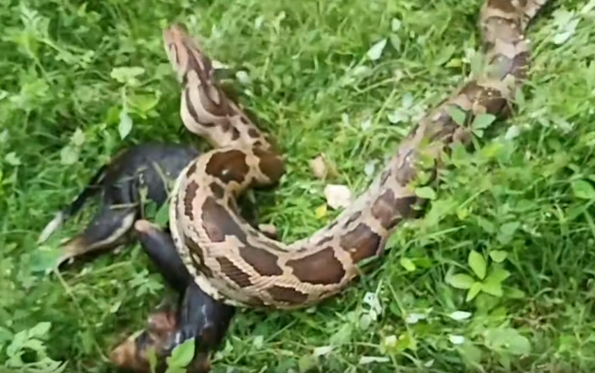 據《鏡報》報導,事情發生在印度的拉賈斯坦邦(Rajasthan)烏代浦(Udaipur)森林附近,一群野生動物愛好者當時正要進行一項救援任務,途中卻發現一條4公尺長的石蟒正在反芻,不料當牠張大嘴巴,竟嘔吐出了黑色的毛茸茸生物,接著只花了短短約14秒,便將整隻動物屍體,吐了出來,這時大夥才發現反芻出來的「龐然大物」,竟是一隻中型流浪犬。