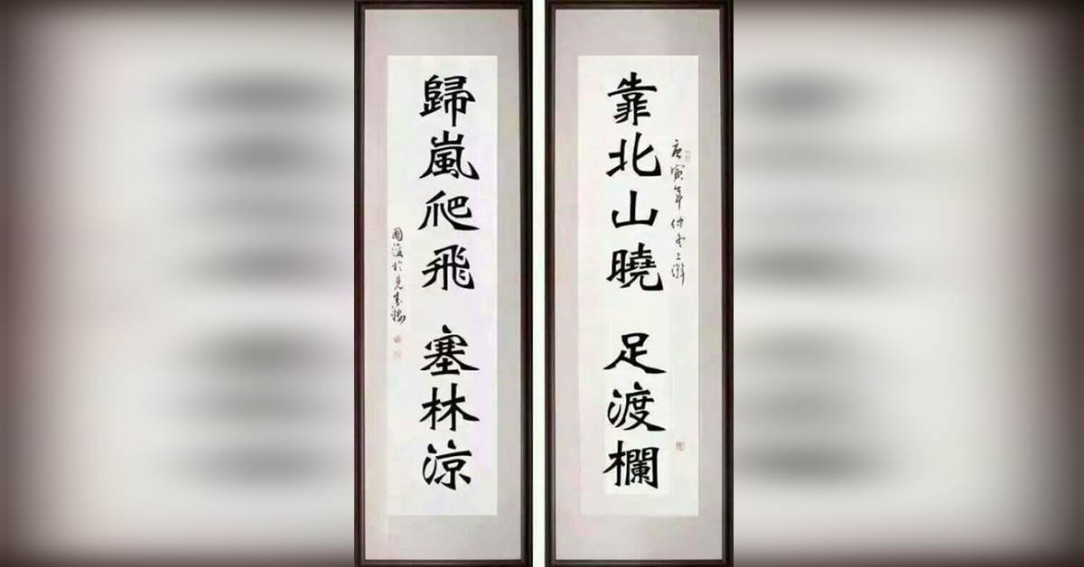 這對聯整副是,上聯「靠北山曉足渡欄」、下聯「歸嵐爬飛塞林涼」。其實就字面上的意思來說,是敘述靠近北方的山,在破曉時很難用雙腳步行渡過;回程的山嵐往上爬,飛到塞外的森林更顯淒涼...是不是頗有意境!這對春聯其實已經在網路上流傳很久,橫批內容也各有不同,只是他的作者並不可考,到底是哪位「大家」能寫出這個又有深意,又饒富「諧音」的對子啦。