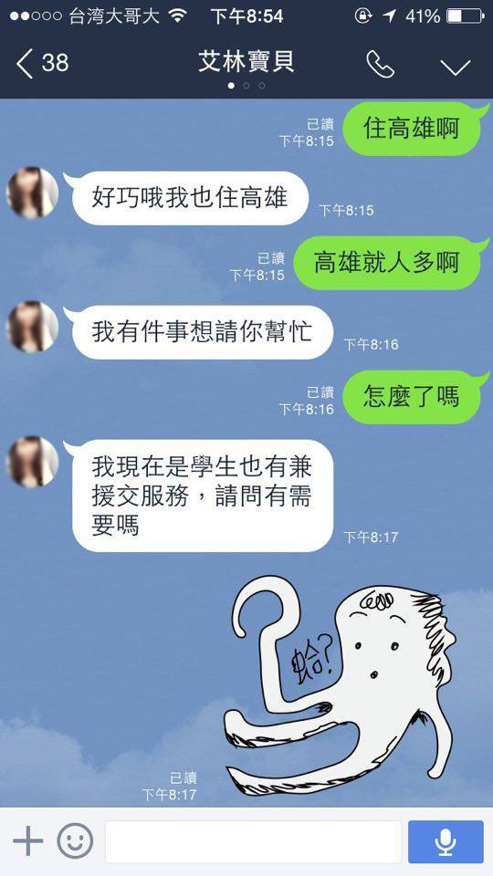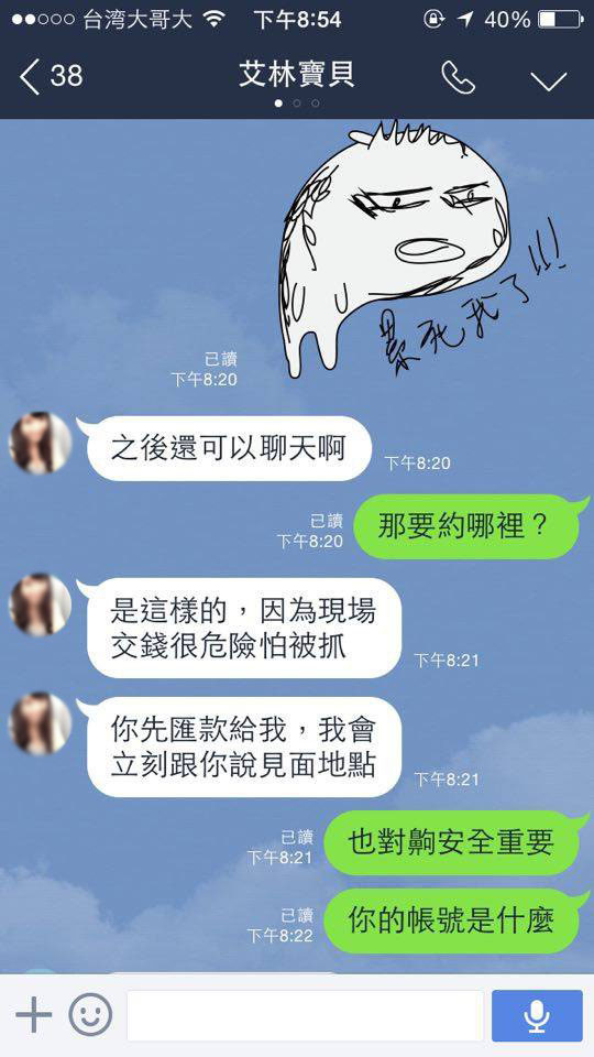 援交妹的LINE對話,可是對話越看越不對勁,看到最後發現根本就是詐騙集團,被拆穿後已讀不回,許多人看了直說「這太糗了」!