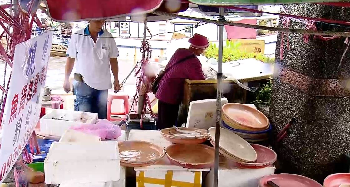 ▼魚販:「颱風來只能加減招攬一下啦。」(圖/東森新聞)