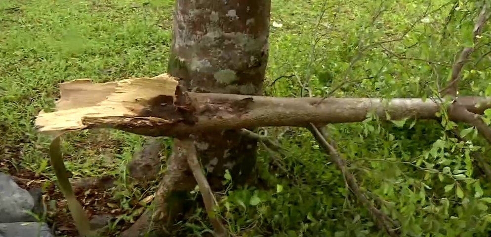 ▼宜蘭風雨太大,有路樹直接被吹斷。(圖/東森新聞)