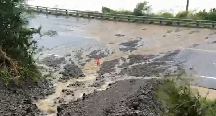 車道上布滿滾滾砂石,長條水流跟著裂開的土石裂縫處,從山坡上不斷往下流,因白鹿颱風來襲,風雨不斷,早上台九線426.4k處跟429.4k處,共兩處發生土石沖刷到馬路上的狀況,兩處距離只有3公里,造成車輛只能單道通行,經公路總局派員處理,花費一個多小時,在下午一點多時候,兩處的狀況都已經排除了。