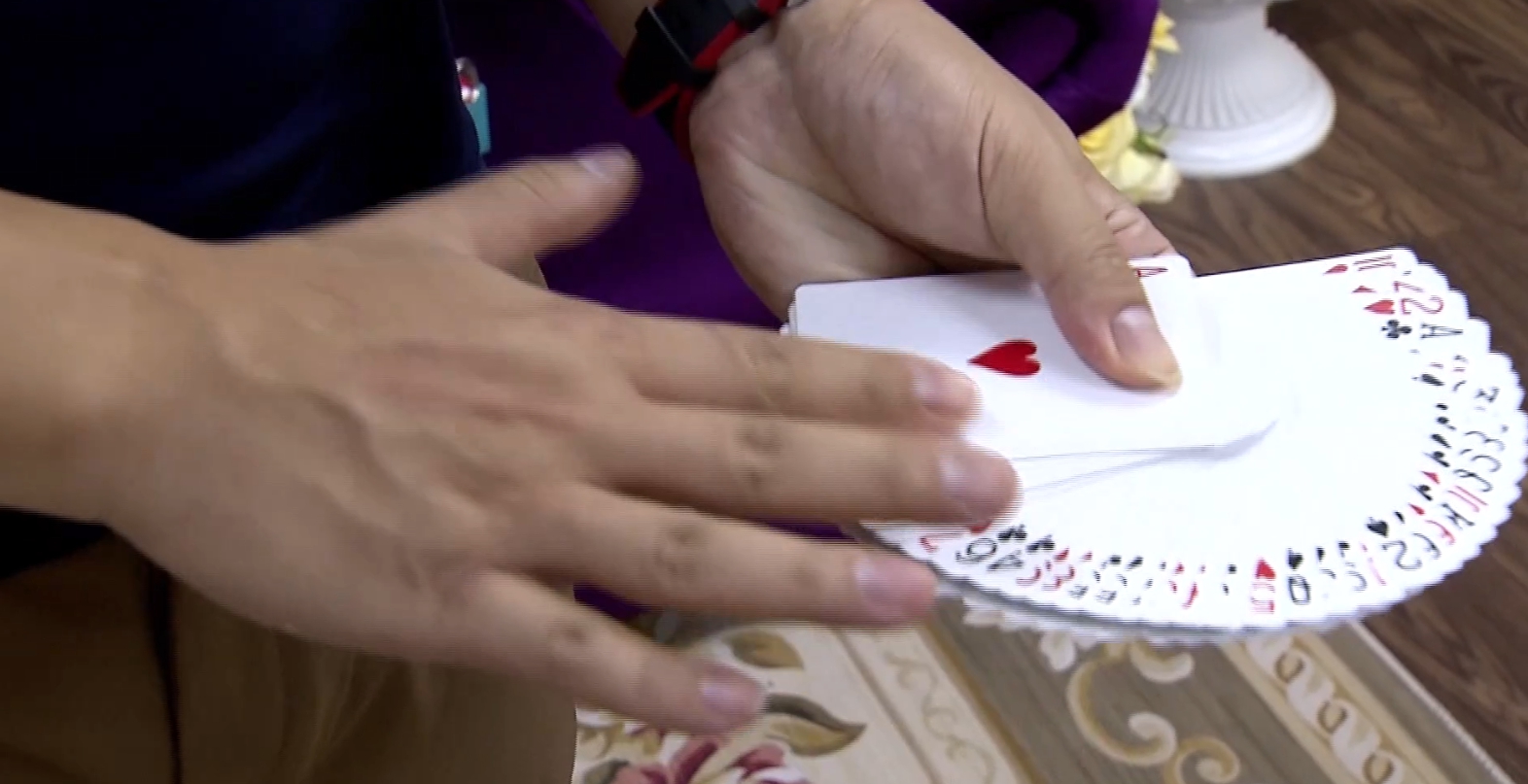 熟練的洗牌拉牌,用力一搓牌就變了,名片拿出來竟然會著火,表演者信手拈來就是一個小魔術,但每一場完整的表演都要萬全準備,練習的時間、交通、設備、 道具 ,通通都是成本,全部只能靠一場一場表演,路邊民眾的打賞,才能養活自己。