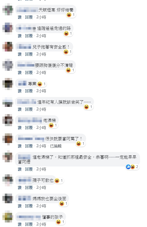 貼文一出,隨即引起熱議,網友看到後都笑到無法自拔,「很快就要當阿嬤了」、「這孩子有前途」、「他在幫妳保護長輩」、「男人不管幾歲都知道抓哪裡最安全」、「身教很重要,小孩是學爸爸的,很聰明啊」、「沒錯啊,後面就這樣抱的啊!從小就要好好練習,不然等等抱不好」、「我女兒也會,然後在後面大笑」。