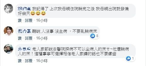 而每個人對習俗的想法也是見仁見智,也有網友看到其他網友憂心的提醒後,表示這不須大驚小怪,還po出照片回應「我爸也讓我躺病床。」