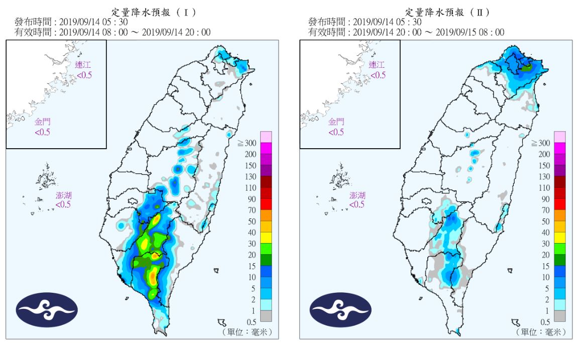 ▼中央氣象局定量降水預報。(圖/中央氣象局)