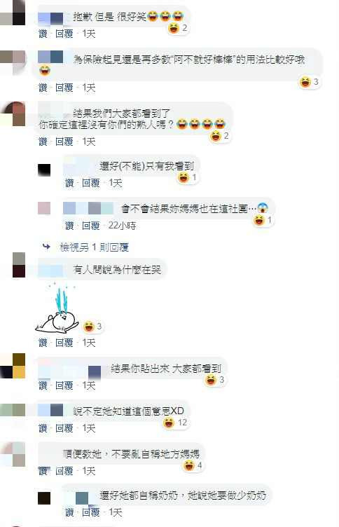 原PO母親的傳錯貼圖事件,也引發網友熱烈討論,不少人紛紛歪樓留言寫下,「說不定妳阿母是真的很開心…」、「是你誤會你阿木了」、「抱歉 但是 很好笑」、「說不定她知道這個意思XD」、「順便教她,不要亂自稱地方媽媽」。原PO也在留言處解釋,「沒有啦,媽媽真的不懂英文」。