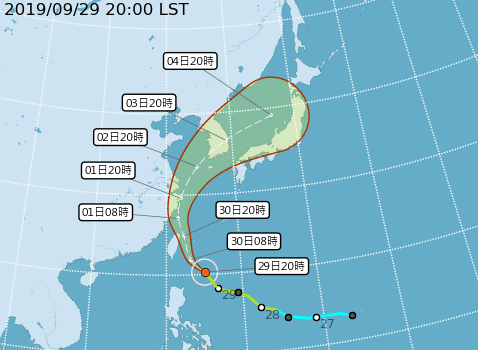 ▼氣象局29日晚間8點半發海上陸上颱風警報。(圖/中央氣象局)