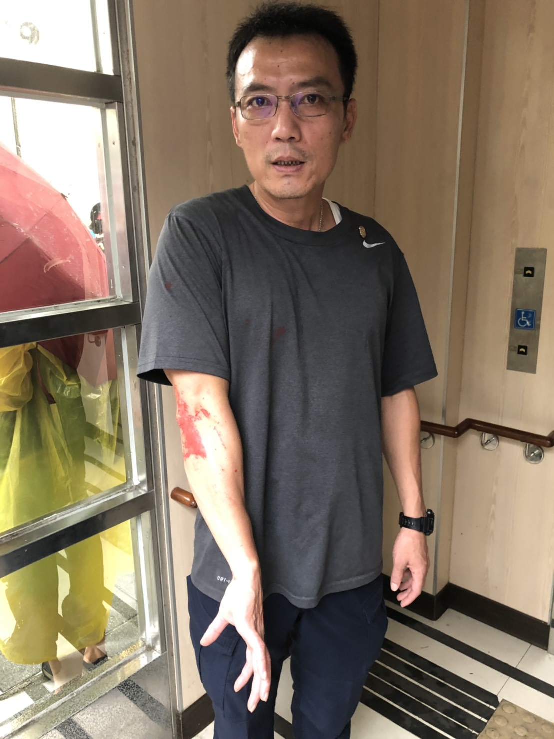 當何女突決定於濟南路受訪時,該局所派遣之警力欲進行近身保護,惟遭工作人員阻擋接近,故僅能在附近周邊警戒。當2名配戴「反送中」字樣工作帽及穿著與主辦單位工作人員相似服飾之男子對何女潑漆時,在場警戒何女安全之警力即與現場工作人員迅速予以壓制逮捕。期間,黃姓警務正及蔡姓警員等2人衣服身體亦遭波及染漆。