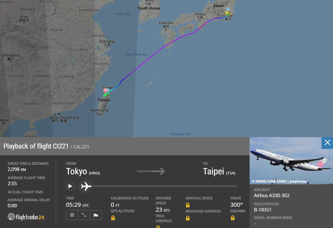 稍後另一架從上海飛松山機場的華航班機,原訂在下午6時15分抵達,雖然第1次降落不成重飛,但在繞行1圈後因天候狀況改善,順利在晚間6時55分降落松山機場。