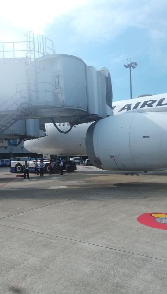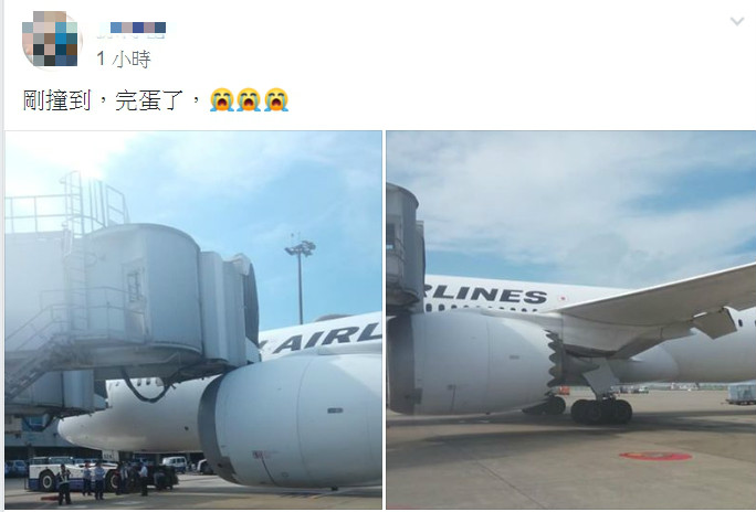 有網友今(6)日上午稍早在臉書社團「爆廢公社」貼出照片,留言說道「剛撞到,完蛋了」,該架日本航空JL-802班機的引擎蓋壓在空橋下方,嚇壞現場所有人。據了解,桃機人員對此表示,該班機所有乘客當時已完成登機,不過班機確定因此延誤,而造成此事故的桃機地勤人員並未有酒駕情況,詳細事發原因仍有待後續釐清。