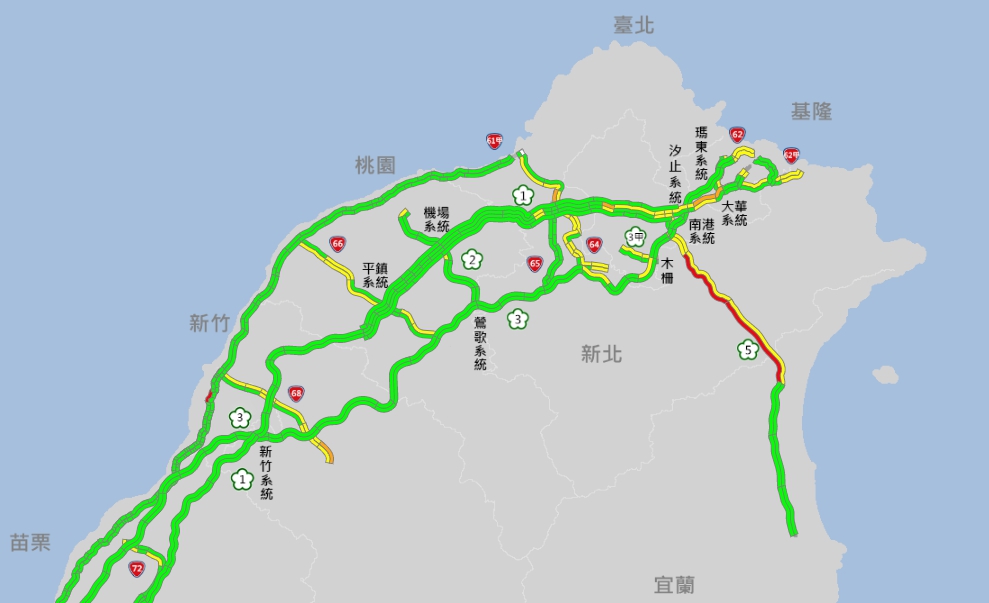 ▼連假首日多路段塞車「紫爆」。(圖/翻攝自高公局網站)