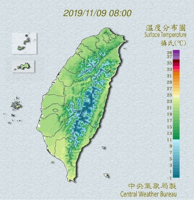 中央氣象局指出,今天受到東北季風持續影響,但水氣明顯減少,轉為乾冷天氣型態,各地多是多雲到晴的天氣,僅東半部地區有零星短暫雨。氣溫方面,中南部地區日夜溫差偏大。