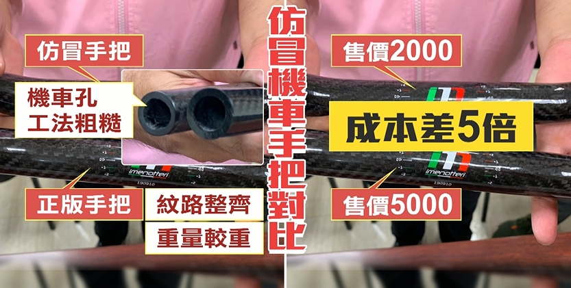 ▼盜版手把工法粗糙,市售價格少一半,成本卻整整差了5倍。(圖/東森新聞 )