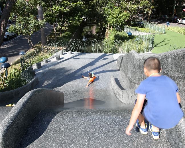 ▼孩子體驗隆恩圳遊具。(圖/新竹市政府提供)