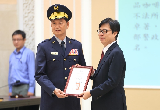 行政院今(11)日下午特別選在毒品防制會報前,舉行「108年第2波安居緝毒專案有功人員」表揚典禮,由陳其邁副院長為專案期間查獲邊境運輸、溯源追查重大毒品、社區藥頭及結合社區民眾破獲毒品案件有功機關、人員頒獎,新北市政府警察局查緝毒品成績名列六都第1名,績效卓著,獲表揚為安居專案有功機關。