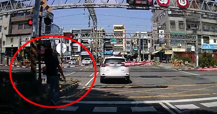 女駕駛不熟悉車輛和交通規則,無心之過,但幸好有熱心路人挺身幫忙,否則火車經過,恐怕造成無法挽回的傷害。