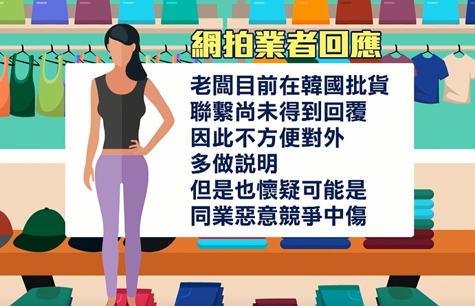 對此業者回應,老闆目前在韓國批貨,聯繫還沒有得到回覆,因此不方便對外多做說明,但是也懷疑有可能是業惡意競爭中傷。